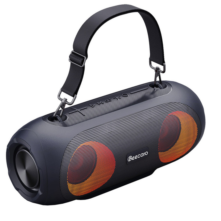 اسپیکر بلوتوث بیکارو مدل GF702، یکی دیگر از شاهکارهای برند بیکارو Beecaro است که با دوبلندگوی باکیفیت و طراحی مدرن انتخاب مناسبی برای گوش دادن به موسیقی در داخل و خارج از منزل و در جمع دوستانه و دورهمی های شما خواهد بود.این اسپیکر دارای طراحی مدرن و نسل جدید ،کانکتور شارژ Type-C رقص نور RGB، ورژن بلوتوث: 5.1 و مقاوم در برابر رطوبت و قطرات آب به همراه قابلیت جذاب(TWS) اتصال همزمان دو اسپیکر به یک گوشی همراه است. این محصول باتری لیتیومی با ظرفیت 3000 میلی آمپر ساعت واقعی را دارا است که به راحتی می توان چند ساعتی به صورت مداوم موسیقی پخش کرد. یکی از ویژگی های اسپیکر GF702 علاوه بر ورودی فلش مموری و شیار کارت حافظه و همچنین ورودی AUX این است که از این اسپیکر به عنوان پاوربانک نیز می توان استفاده نمود که در مواقع ضروری امکان بسیار شایسته ای است.