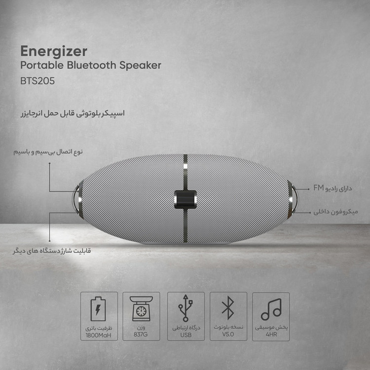 اسپیکر بلوتوثی قابل حمل انرجایزر مدل BTS205