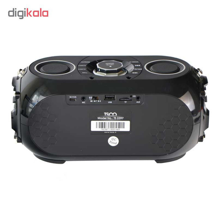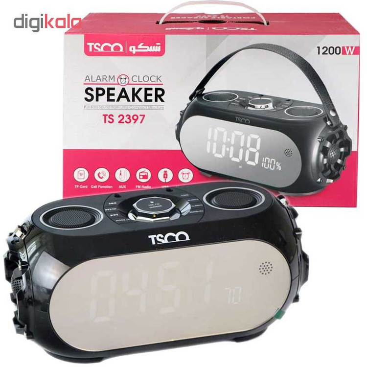 اسپیکر TS2397 محصولی حرفه ای از برند (تسکو- TSCO) است که در گروه اسپیکرهای قابل حمل قرار میگیرد و با طراحی خاص و زیبای خود کاربردهای فراوانی دارد. این دستگاه فقط یک اسپیکر نیست؛ بلکه، ساعت، رادیو و استند رومیزی موبایل نیز محسوب میشود. این اسپیکر به صورت باسیم و بیسیم به تلفنهمراه یا پخشکننده موسیقی متصل میشود. اتصال بیسیم این اسپیکر از طریق بلوتوث ، پورت USB ، شیار کارت حافظه انجام میشود و اتصال باسیم در آن به کمک جک 3.5 میلیمتری صدا امکان پذیر خواهد بود. همچنین در قسمت جلویی این اسپیکر یک نمایشگر به چشم میخورد که نشاندهندهی ساعت است. این نمایشگر در کنار ظاهر زیبا، باعث حرفه ای ترشدن این اسپیکر و تبدیل آن به یک محصول بسیار شیک و دوستداشتنی شده است. TS 2397 بهعنوان محصولی بسیار کاربردی در اتاقخواب ها مورد استفاده افرادی قرار میگیرد که میخواهند اسپیکری با امکانات زیاد داشته باشند.