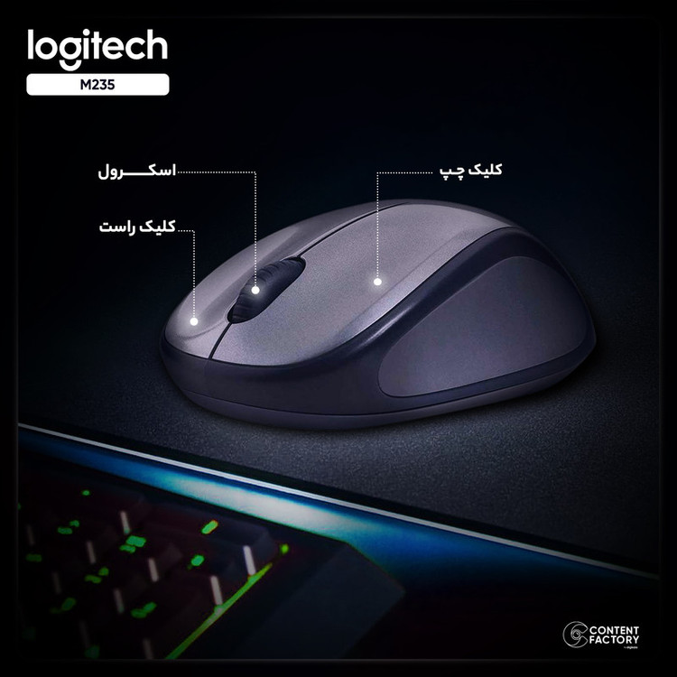 ماوسها، یکی از قدیمیترین ابزارهای کنترل کامپیوترهای شخصی هستند که بدون وجود آنها، تجربهی کاربری شیرین و لذتبخش کامیپوتر برای خیلی از افراد به عذابی دردناک تبدیل میشود. تصور کنید مرور صفحات اینترنتی بدون در اختیار داشتن ماوس تا چه اندازه غیر قابل تحمل خواهد بود. ماوسهای کامپیوتر با وجود اینکه بیش از 50 سال از عمرشان میگذرد، هنوز هم از همان فرم ساختاری ماوسهای اولیه بهره میبرند. شاید آقای داگلاس انگلبارت (Douglas Engelbart) در زمان اختراع اولین ماوس، کارش را آنقدر خوب انجام دادهبود که دیگر کسی نمیتوانست بهتر از او این کار را انجام دهد یا حداقل آن را بهبود بخشد. ماوسهای کامپیوتر برای مصارف گوناگونی مورد استفاده قرار میگیرند: کاربردهای صنعتی، مهندسی، آموزشی، انجام کارهای اداری، برای بازی و ... چیزی که در این بین و در تمام کاربردها مشترک است، نیاز به وجود این ابزار کوچک و ضروری است. ماوسM235 محصول شرکت لاجیتک (Logitech) است که به واسطه یک دانگل (Dongle) فرستنده/گیرنده و از طریق پورت USB به کامپیوتر وصل میشود و میتوان تا فاصله 10 متری از کامپیوتر با آن کار کرد. حسگر ماوس M235 از نوع اپتیکال (نوری) بوده و دارای دقت 1000 دیپیآی (DPI) است که برای مصارف خانگی و اداری مناسب است. این ماوس در رنگ مشکی تولید شدهاست و میتوان با هر دو دست با آن کار کرد. M235 انرژی مورد نیاز خود را از یک عدد باتری قلمی (سایز AA) تامین میکند که تا چندین ماه دوام میآورد. این ماوس از اکثر نسخههای سیستم عامل ویندوز (Windows) پشتیبانی میکند و استفاده از آن بسیار دلچسب است. استفاده از فرکانس بیسیم 2.4 گیگاهرتز و رنگبندی متنوع، از ویژگیهای مثبت این ماوس است.