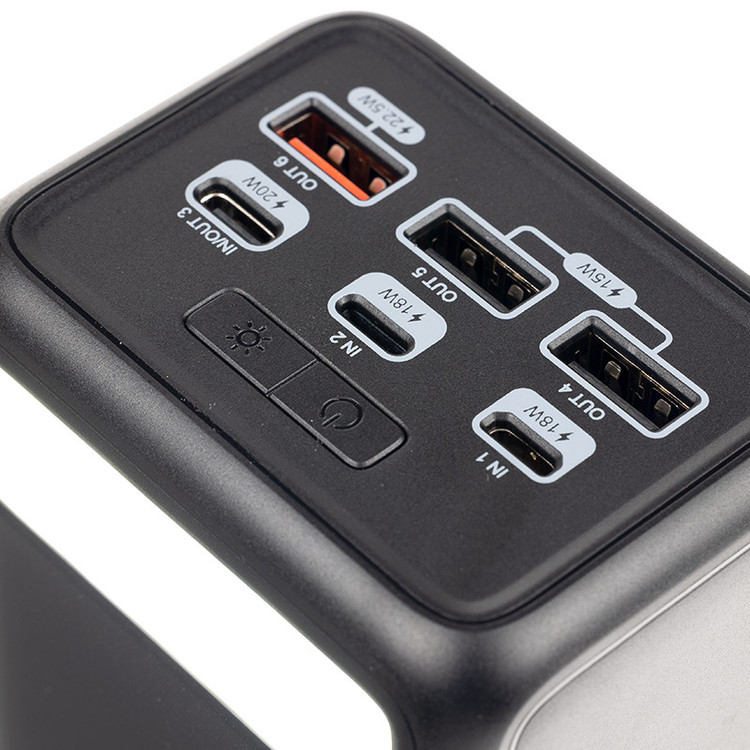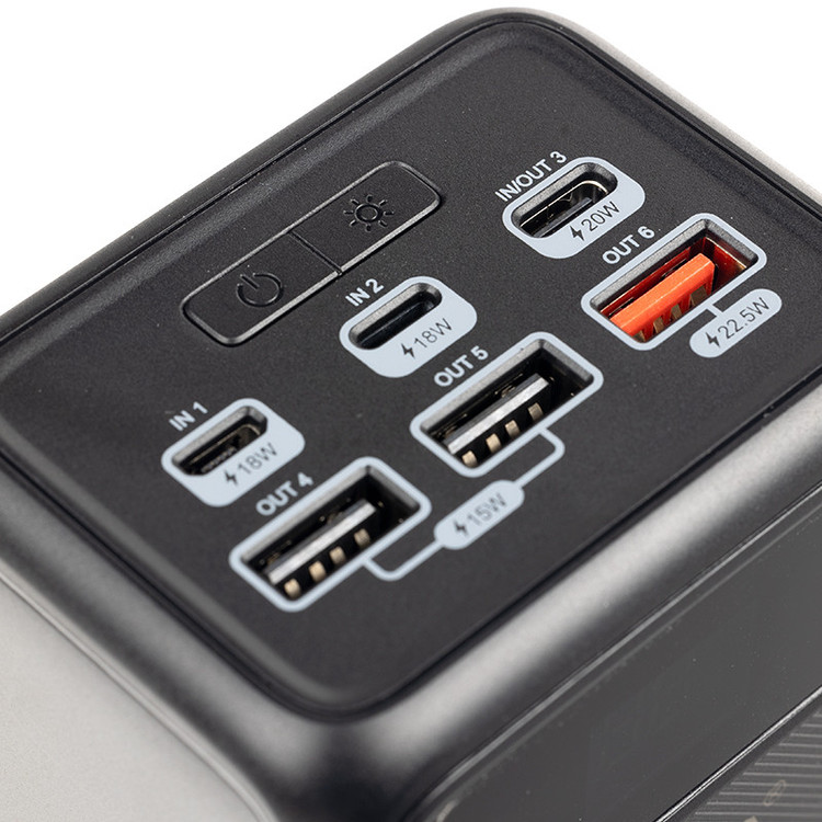 توان خروجی: 22.5 وات پورت ورودی: Type-c - Lightning - Micro USB پورت خروجی: 3x USB - Type-c فناوری PD Charging - فناوری Qualcomm QC 3.0 دارای چراغ قوه با توان 2 وات دارای نمایشگر LCD درصد میزان شارژ به همراه کابل شارژ دو سر تایپ سی
