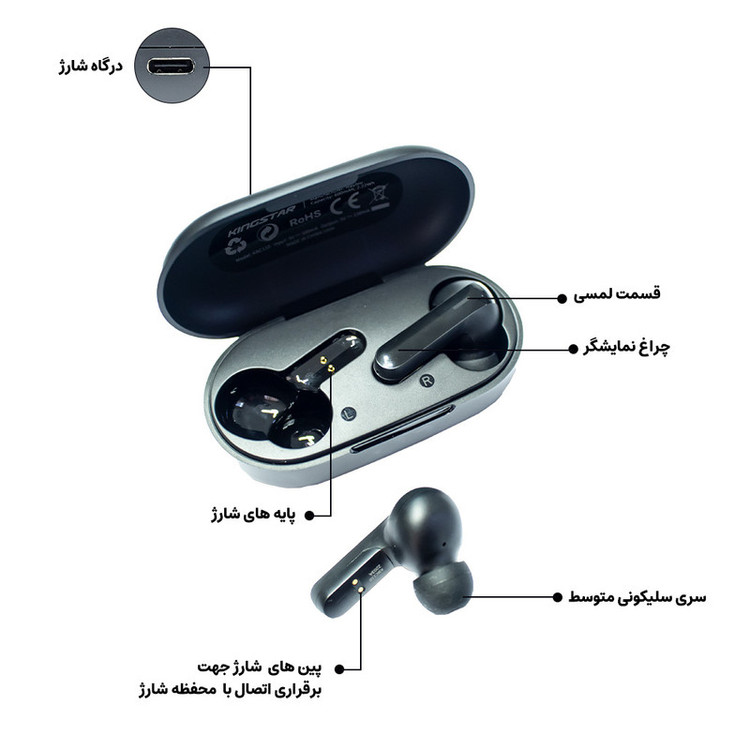 ایرباد آهنربایی کینگ استار مدل KBC110 علاوه بر طراحی شیک و زیبا و کیفیت صدایی عالی دارای قابلیت اسمارت تاچ میباشد. محدوده عملکرد این ایرباد تا 10 متر است بنابراین با این مقدار فاصله از گوشیتان به راحتی میتوانید با آن کار کنید؛ موزیک گوش کنید و یا صحبت کنید.این محصول دارای ظرفیت 4 ساعته جهت مکالمه و 105 ساعته درحالت استندبای میباشد. همچنین برای استفاده از این محصول نیاز به داشتن نسخه بلوتوث 5 است. از دیگر پارامترهای قابل توجه برای استفاده از ایربادز بیسیم کینگ استار مدل KBC110، تعداد دفعات شارژ گوشی هاست که 6بار انجام میپذیرد و هربار به میزان 1.5 ساعت جهت شارژ کامل آنها زمان نیاز خواهد داشت. مقدار ظرفیت جعبه شارژ ایربادز نیز 600 میلی آمپر و زمان شارژ آن نیز 2.5 ساعت میباشد. دفترچه راهنما به همراه کابل شارژ تایپ سی و دو جفت سری سیلیکونی از اقلام همراه این محصول به شمار میروند.