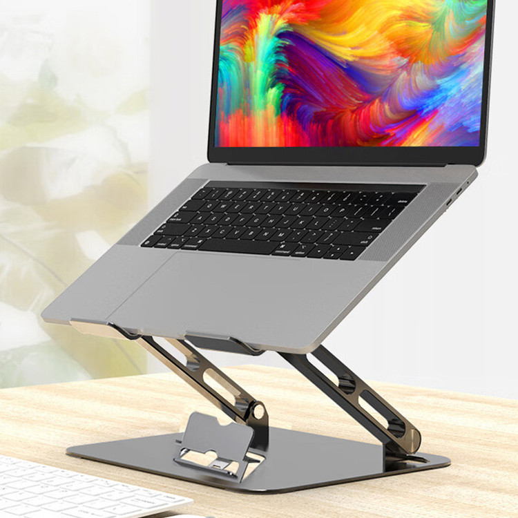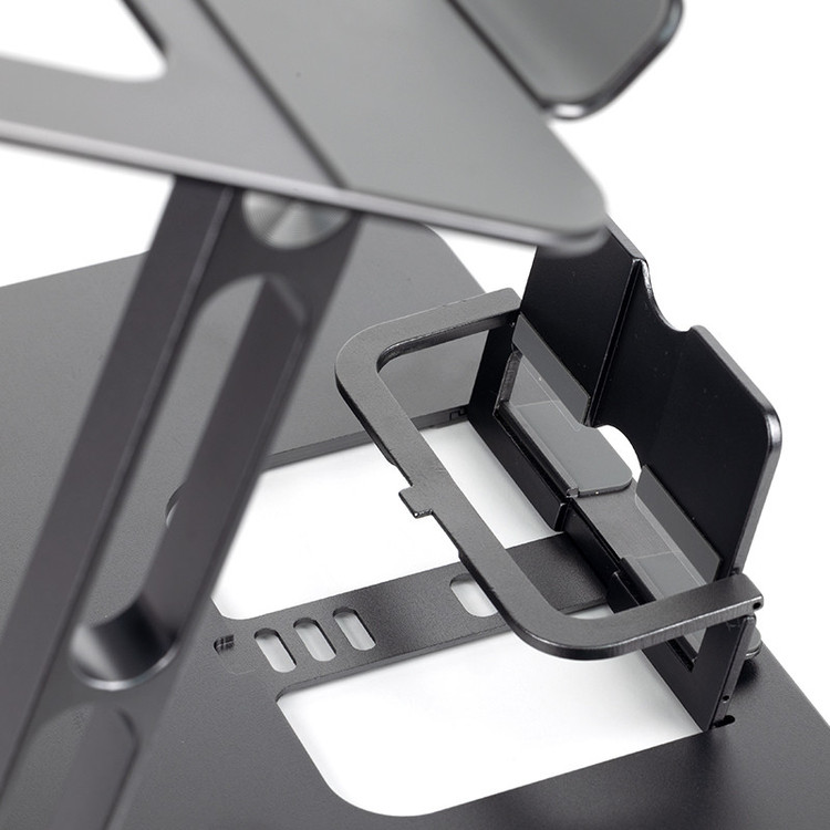 استند مجزا برای موبایل و تبلت قابلیت تنظیم ارتفاع و ززاویه دارای پد سیلیکونی در زیر پایه ها برای عدم لغزش دارای پد سیلیکونی در زیر لپ تاپ برای جلوگیریی از لغزش تبادل هوای عالی برای جلوگیری از داغ شدن