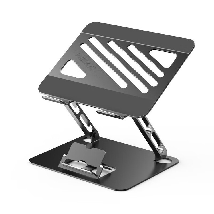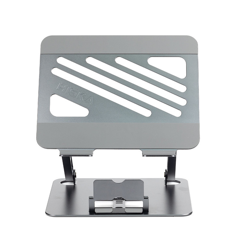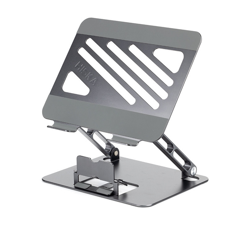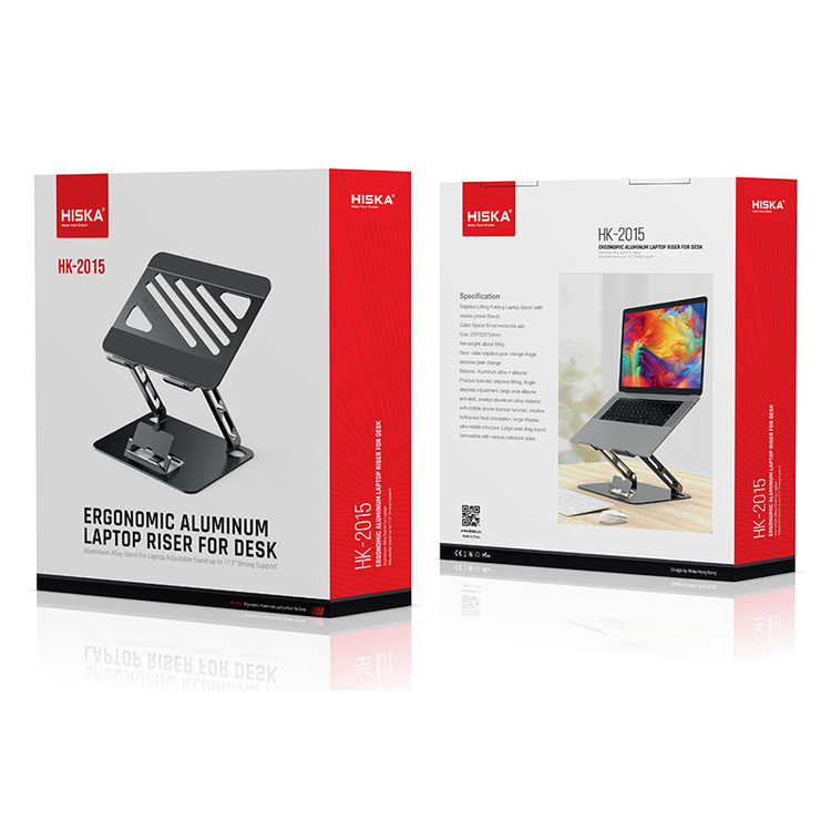 کار کردن طولانی مدت با لپ تاپ آن هم نشستن در زاویهای نامناسب با خود خستگی، درد گردن و کتف را به همراه دارد و نمیتوانید به خوبی روی کارها تمرکز داشته باشید؛ پس بهتر است یک استند لپ تاپ تهیه کنید و ساعتها کار بدون خستگی با لپ تاپتان را تجربه کنید. استند لپ تاپ هیسکا مدل HK-2015 با قابلیت تنظیم ارتفاع لپ تاپ در حین کار، به شما این امکان را میدهد تا لپ تاپ خود را در بهترین زاویه ممکن قرار دهید. جنس بدنه استند لپ تاپ هیسکا از ترکیب سیلیکون و آلومینیوم طراحی و تولید شده است. بعضی اوقات در زمان استفاده از لپ تاپ بدون میز ممکن است دچار خستگی شوید، در این زمان استفاده از پایه نگهدارنده لپ تاپ یا استند بسیار به شما کمک خواهد کرد. با استفاده از این محصول می توانید ساعت ها بدون خستگی ستون فقرات، گردن و مهره های کمر در وضعیت نشسته سالم قرار بگیرید. در حقیقت با استفاده از استند لپ تاپ هیسکا، ارگونومی استفاده از لپ تاپ را اصلاح می نماید. جنس بدنه استند لپ تاپ هیسکا از ترکیب سیلیکون و آلومینیوم می باشد که همین امر سبب رسانای خوبی برای دفع حرارت بوده و لپ تاپ شما را به خوبی خنک می کند. علاوه بر لپ تاپ ها ، این استند برای تبلت ها نیز مناسب است. این استند برای لپ تاپ ها و تبلت ها از 10 تا 17 اینچ مناسب است. و وزن استند لپ تاپ 850 گرم وزن دارد، بنابراین می توانید براحتی آن را حمل کنید. هم چنین در طراحی این محصول یک استند مجزا برای موبایل نیز در نظر گرفته شده است که شما همزمان می توانید از لپ تاپ و موبایل خود بر روی این استند استفاده کنید.
