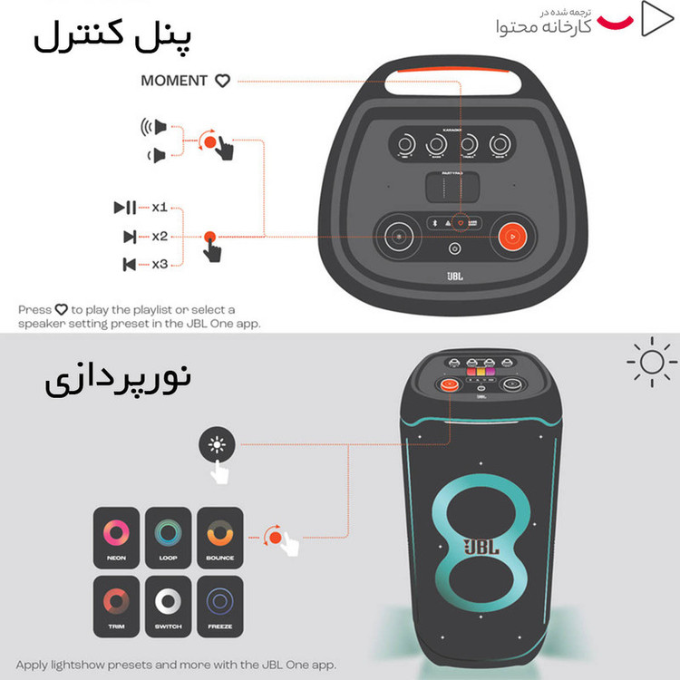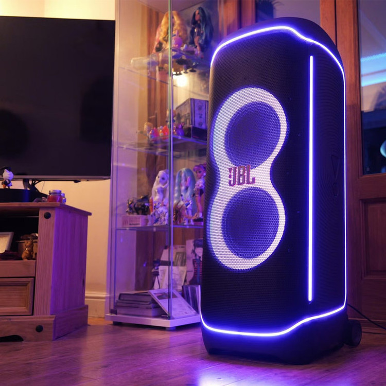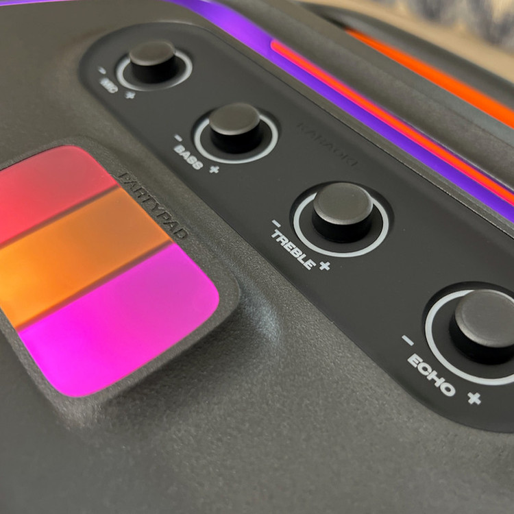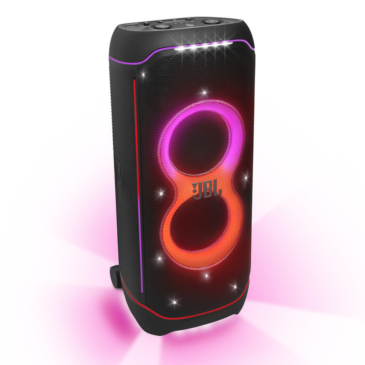 اسپیکر پرتابل و بلوتوثی Ultimate نسل جدید اسپیکرهای سری PartyBox از برند محبوب جی بی ال است. این اسپیکر قابل حمل با درایورهای بهبود یافته و سخت افزار بروز شده، تجربهی صوتی متفاوتی را به شما ارائه میدهد. همچنین طراحی ظاهری زیبا و چشمگیر آن همراه با بدنهی ضدآب و مقاوم ، شما را با سطح جدیدی از سیستمهای صوتی پرتابل آشنا میکند. دلیل نامگذاری این اسپیکر ظرفیت بالای صدای تولیدی و آخرین و به روزترین تکنولوژیهای نوری و سیستماتیک این محصول است همچنین برای اتصال این اسپیکر به دستگاههای پخش مانند گوشی موبایل یا پلیرها ، از تکنولوژی بلوتوث استفاده شده است تا بتوانید به راحتی به این اسپیکر متصل شده و به صورت بی سیم موسیقی مورد علاقه خود را بشنوید. جی بی ال در سری جدید اسپیکر Ultimate از بلوتوث نسخه 5.3 که جدید ترین نسخه در حال حاضر است استفاده کرده است و این اسپیکر حرفهای دارای صدای قدرتمند و شفافی است که توسط درایور های جدید و بهبود یافته تولید و پخش میشود. 2 عدد ساب ووفر 242میلی متری(9 اینچی) به همراه 2 عدد بلندگوی مید رنج 120میلی متری(4.5 اینچی) و 2 عدد بلندگوی تیوتر 74 میلی متری(2.75اینچی)در کنار هم تجربهی صوتی جدید و بی نظیری را برای شما فراهم میکنند. در مجموع این محصول قادر است تا صدایی به قدرت 1100 وات RMS را تولید کرده و به گوش شما برساند. بازه فرکانسی قابل پخش در این سیستم صوتی مابین 30 هرتز تا 20000 هرتز است که برای اسپیکری با این ابعاد فوق العاده است. تنظیمات افکتهای صوتی و نوری نیز از جدید ترین نوع بوده و رقص نور و نور پردازی با جزعیات دقیق آهنگ پخش شده هماهنگ میگردد. ورودیهای میکروفن و گیتار هم دارای تنظیمات دقیقی است تا هر آنچه از صوت و تصویر برای برپایی میهمانیهای خود نیاز دارید در کنار هم جمع باشد.با وجود وزن زیاد این محصول،چرخ های تقویت شده آن نسبت به مدلهای قبلی کارایی بهتری در جا به جایی آن در اختیار کاربر قرار می دهند.اتصال تمامی محصولات خانواده PartyBox به هم در این محصول دیده میشود و میتواند تمام کننده ی نیاز صوتی شما باشد.اسپیکر Ultimate برترین محصولی است که واژهی JBL Pro Sound را به تصویر میکشد.